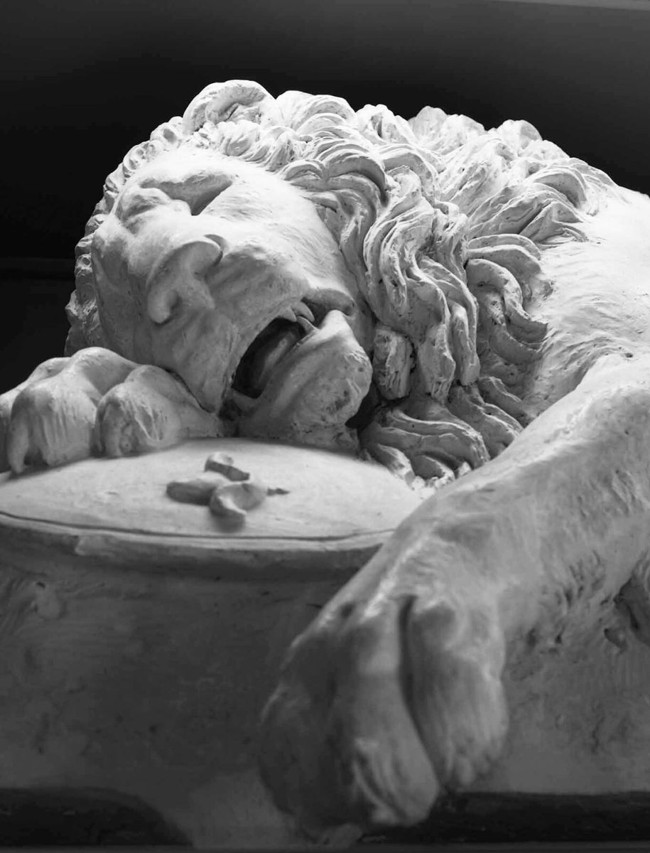 Abb. 2: Modell des Löwendenkmals von Bertel Thorvaldsen von 1819 im Historischen Museum Luzern, Fotografin Susanne Stauss, 2021.